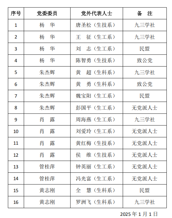 英国365上市公司生物科学技术院党委委员联系党外人士一览表