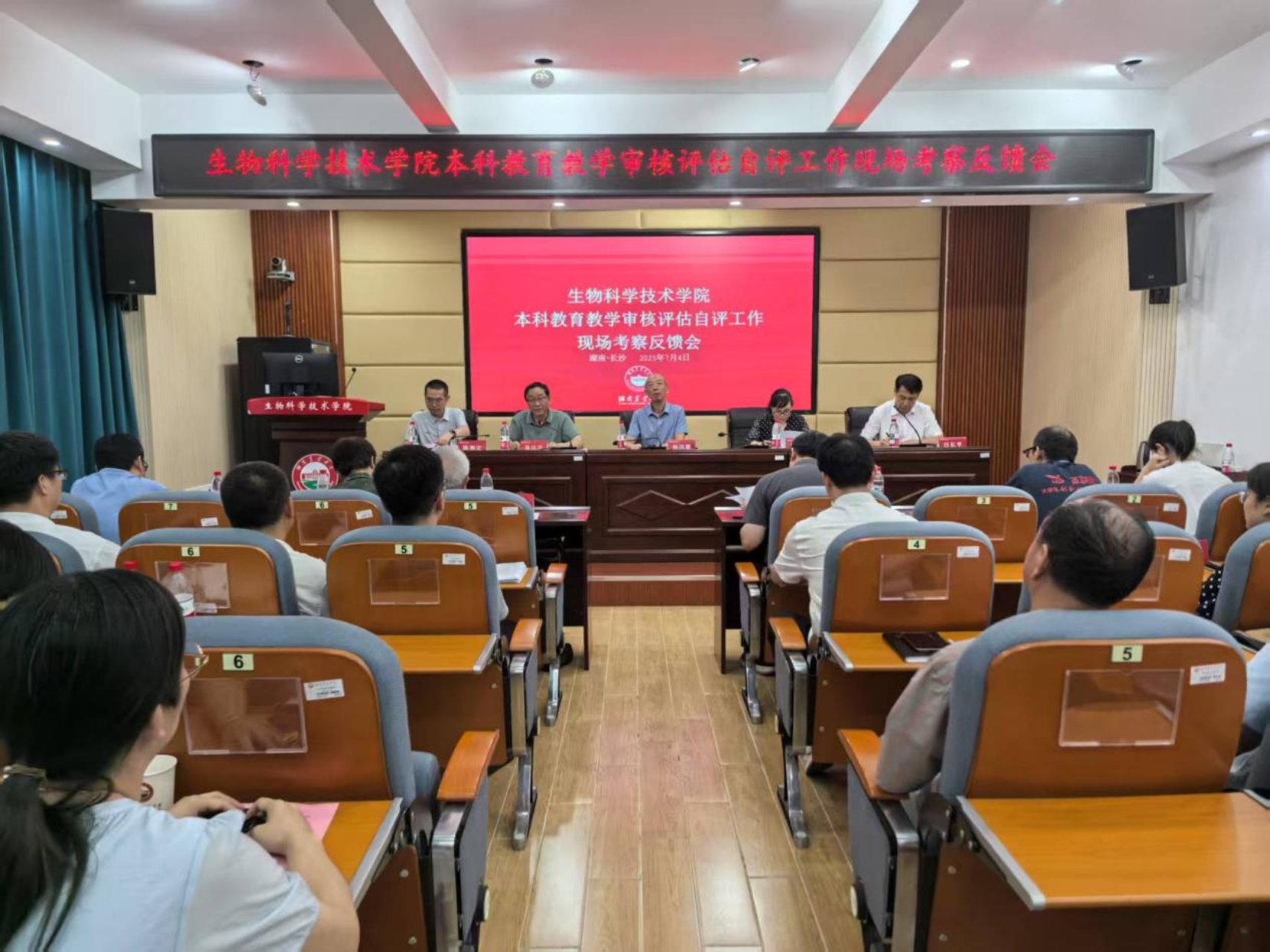 材料检查环节,湖南大学生物学院郭新红教授、湖南师范大学陈湘定教授与学校易自力教授、周治淼教授及徐庆国教书等专家对学院培养方案、教学大纲、教学文件、课程考核资料和毕业论文等教学资料对照评估指标体系进行了全面、细致的抽检,提出了很多非常中肯的意见和建议。