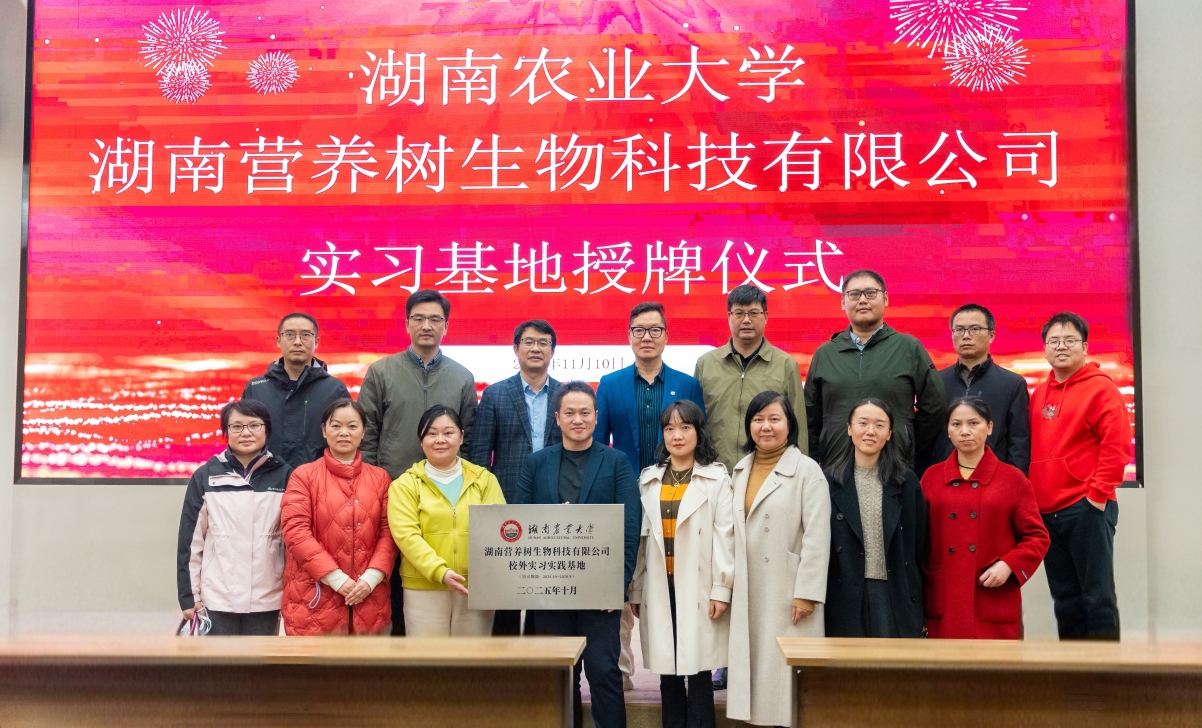 2025年11月10日,学院“校外实习实践基地”授牌仪式在长沙市湖南营养树生物科技有限公司举行。院长杨华、党委书记朱杰辉、副院长黄超和师生代表,湖南营养树生物科技有限公司董事长肖宏、总经理杨涛等相关负责人参加。