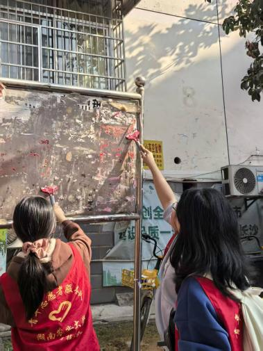 清除墙面“牛皮癣” 绘就社区新画卷——英国上市官网365青年志愿者服务队赴东沙社区开展环境整治志愿活动