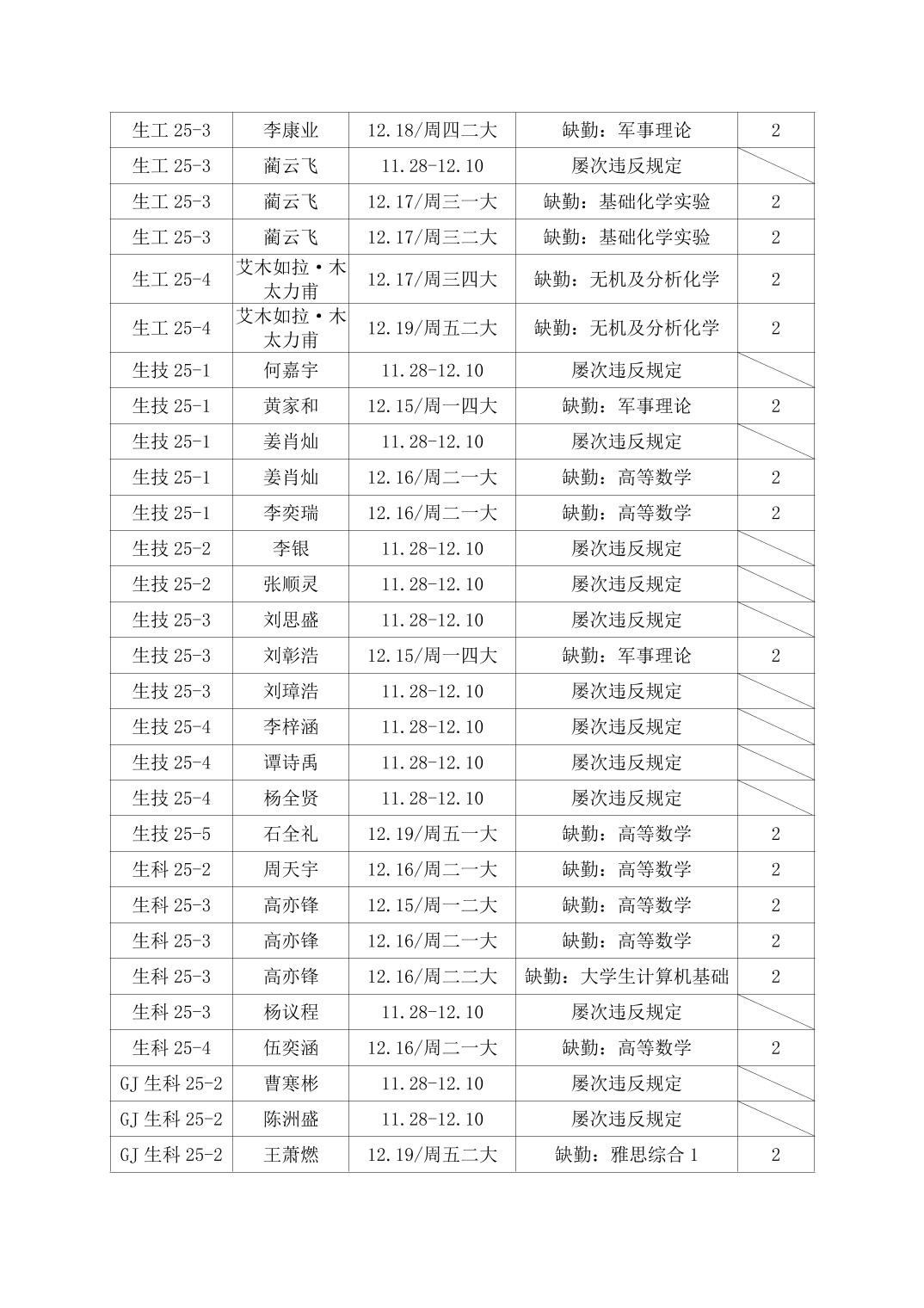 2025年秋季学期英国上市官网365第16周日管通报